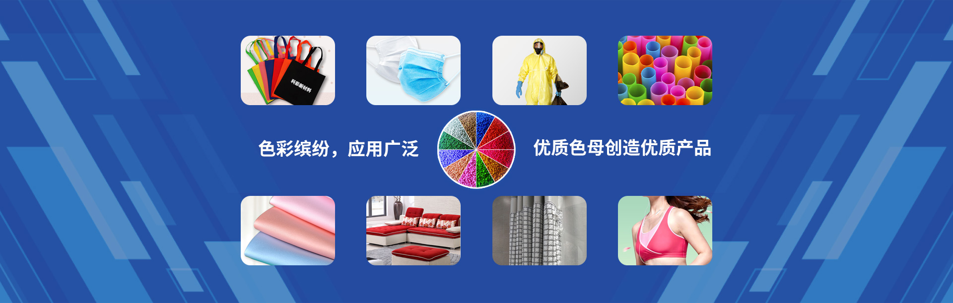 公司的主營產品以(PP)聚丙烯基質的丙綸纖維彩色母粒、丙綸纖維黑色母粒、丙綸纖維白色母粒、丙綸纖維功能母粒,共分為四大類型,廣泛應用于丙綸無紡布、紡絲、拉絲、醫療衛材、環保降解材料等多個領域。在丙綸紡絲著色方面有著多年積累的經驗,借助先進的技術和完善的管理體系,為國內外廣大的丙綸客戶提供著色和改性服務。